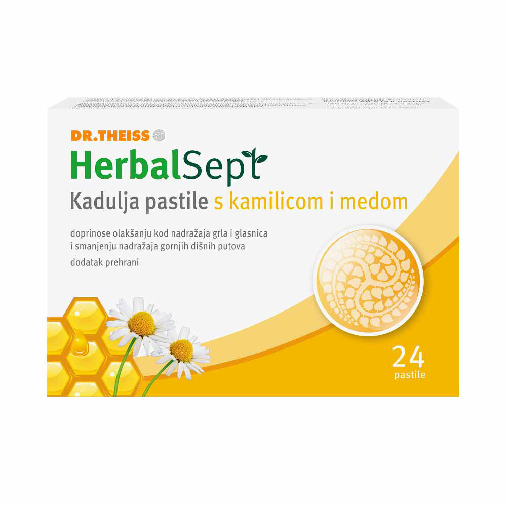 Prednosti izdelka Dr. Theiss HerbalSept žajbljeve pastile s kamilico in medom