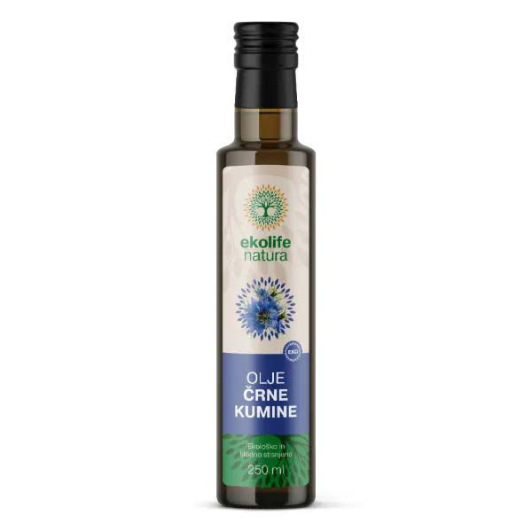 Ekolife Natura olje črne kumine je ekološko pridobljeno, hladno stiskano olje, ki vsebuje naravne sestavine semen črne kumine, s posebnim aromatičnim vonjem.