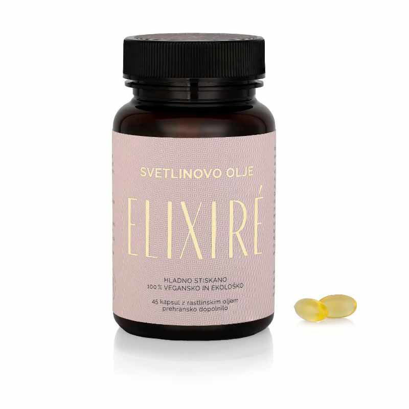 ELIXIRÉ svetlinovo olje v kapsulah je hladno stiskano olje, ki je 100 % vegansko in ekološko.