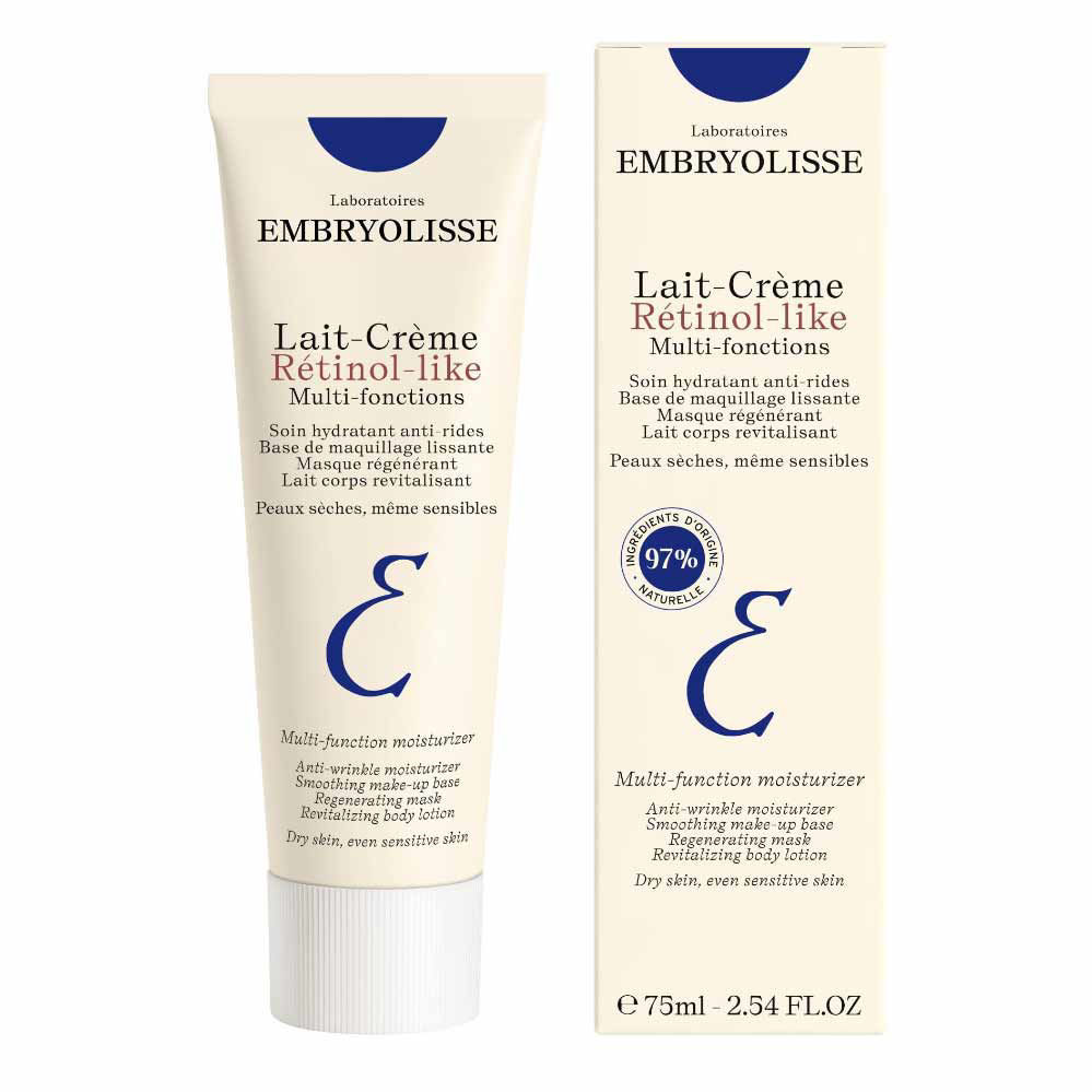 Embryolisse Lait-Crème Retinol-like je prva 5-v-1 večnamenska nega proti gubam. Zahvaljujoč svoji inovativni aktivni sestavini, 100% francoski rastlini, podobni retinolu, ta nega nudi močno moč proti gubam, primerljivo z retinolom, brez neželenih učinkov. Alternativa naravnega izvora, učinkovita in dostopna, brez kompromisov glede učinkovitosti in tolerance, saj zagotavlja celovito in učinkovito rešitev proti gubam za vse starosti in tudi za občutljivo kožo. Ta večnamenska nega je nova skrivnost lepotnih strokovnjakov in oboževalcev linije Milk-Crème.