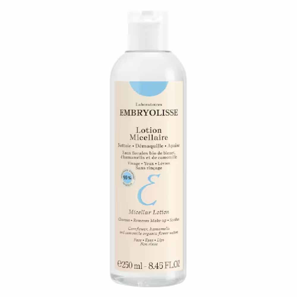 Embryolisse micelarni losjon je formuliran s kar 95 % sestavin naravnega porekla. Embryolisse micelarni losjon hitro in nežno odstrani liičla z obraza, vek in ustnic ter je dovolj nežen tudi za najbolj občutljivo kožo. Embryolisse micelarni losjon vsebuje micele za nežno čiščenje v raztopini rožne vodice modrega glavinca (Centaurea cyanus), nepozebnika in kamilice, ki v kombinaciji z glicerolom mehčajo, negujejo in tonizirajo kožo. Po čiščenju z Embryolisse micelarnim losjonom je koža pomirjena, mehka in napeta.