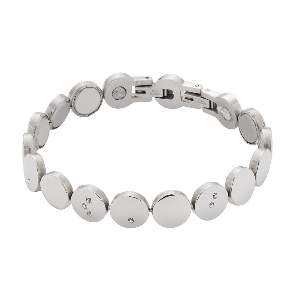 Brezčasna Energetix magnetna zapestnica s kristali v krogcih ima okrogle elemente z zaključkom iz poliranega nerjavečega jekla. Predstavlja klasičen kos nakita za vsakodnevno nošenje, vendar bo vedno naredil odličen vtis tudi ob posebnih priložnostih. Zraven je na voljo ustrezna razširitev 3977-1. Energetix za svoje magnetne izdelke uporabljajo le najboljše nerjaveče jeklo ter neodim magnete, ki veljajo za najmočnejše in najučinkovitejše v našem času. Energetix magnetna zapestnica s kristali v krogcih nosi kar dva, z močjo 0,12 Tesla ali 1200 Gauss.