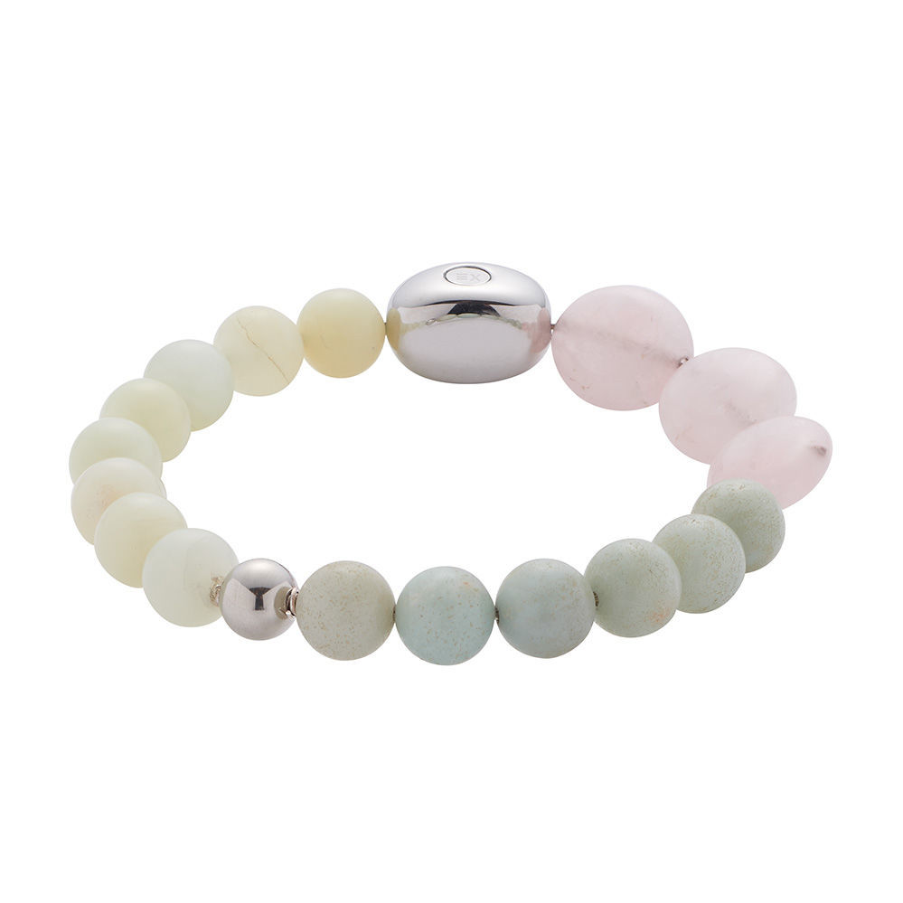 Ta zapestnica je bila ustvarjena s različnimi poldragimi kamni, kot sta rožnati kremen in amazonit v kombinaciji z mehkim in sijočim elementom iz nerjavečega jekla. Ta element iz nerjavečega jekla se ponaša z dvema Neodim magnetoma, ki nosita moč 0,12 Tesla. Nežne pastelne barve kuglic iz poldragega kamna dajejo vtis romantike in nežnosti ter poletnega navdiha. Terapija z magneti pa nosi številne blagodejne koristi za vaše telo in splošno počutje. Posežite po tem edinstvene kosu nakita in sprobajte vse prednosti.