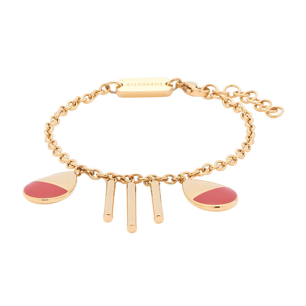 Energetix magnetna zapestnica z elementi v obliki kapljice in palčkami, izdelana iz poliranega nerjavečega jekla, nudi pravo poletno svežino z barvami korale in zlate. Zanimivo oblikovani elementi imajo izjemno individualen videz. Hladni emajl lak in nerjaveče jeklo v zlati barvi se na tej magnetni zapestnici združita, da ustvarita modno kombinacijo, ki je hkrati resnično aktualna in mladostna. To zapestnico nosi lahko prav vsak in je primeren za vse starosti. Še posebej pa se lepo poda na ženskem zapestju.