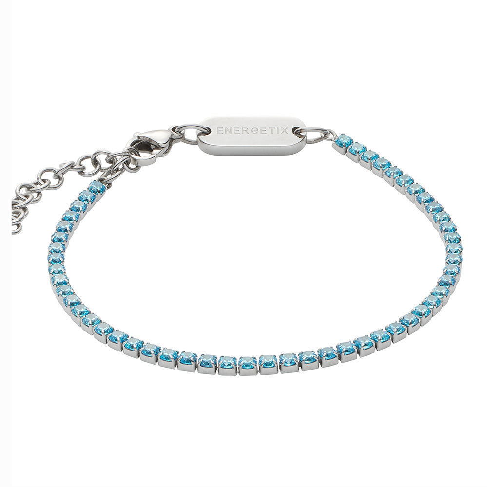 Ta delikatna magnetna zapestnica, obogatena z nizem cirkonijevih kamnov, na vašem zapestju ustvarja nežen vtis, poln bleščanja. Praktični nosilci se premikajo tako, da se zapestnica lahko lepo tesno prilega zapestju, kar še bolj poudari barvo cikronijevih kristalčkov. Energetix magnetna zapestnica z nizem cirkonijevih kamnov je ustvarjena v turkizni ali nežno roza barvi. Poleg tega nerjaveče jeklo preprečuje korozijo, kar pripomore k dolgemu ter brezskrbnemu nošenju skozi ves dan. Namig: še posebej modno izgleda, če med seboj kombinirate več zapestnic.