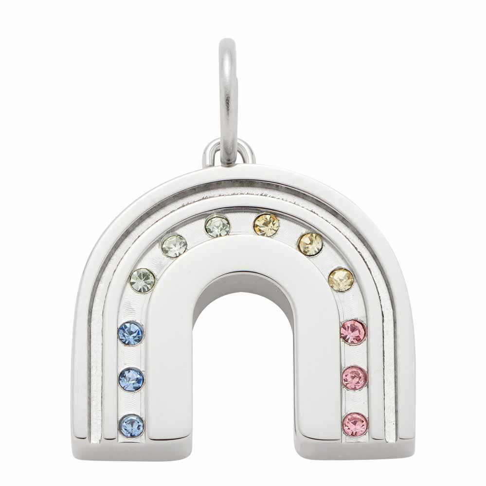 Ta igriv majhen magnetni obesek Energetix je popoln kos nakita za vse, ki so mladi in ostajajo mladi po srcu. Ima obliko mavrice in je posuta s številnimi kristali pastelnih barv, da se lesketa. Preliv barv sledi mavrični barvni paleti. Energetix magnetni obesek v obliki mavrice s pisanimi kristali je poleg tega ustvarjen iz nerjavečega jekla, kar preprečuje pojav korozije. Energetix magnetni obesek v obliki mavrice s pisanimi kristali je odlična ideja za darilo za punce in igrive ženske. Nosi 1 neodimov magnet z močjo 0,12 Tesla ali 1200 Gauss. Združljivost - ogrlica: A (2,7), B (3,7).