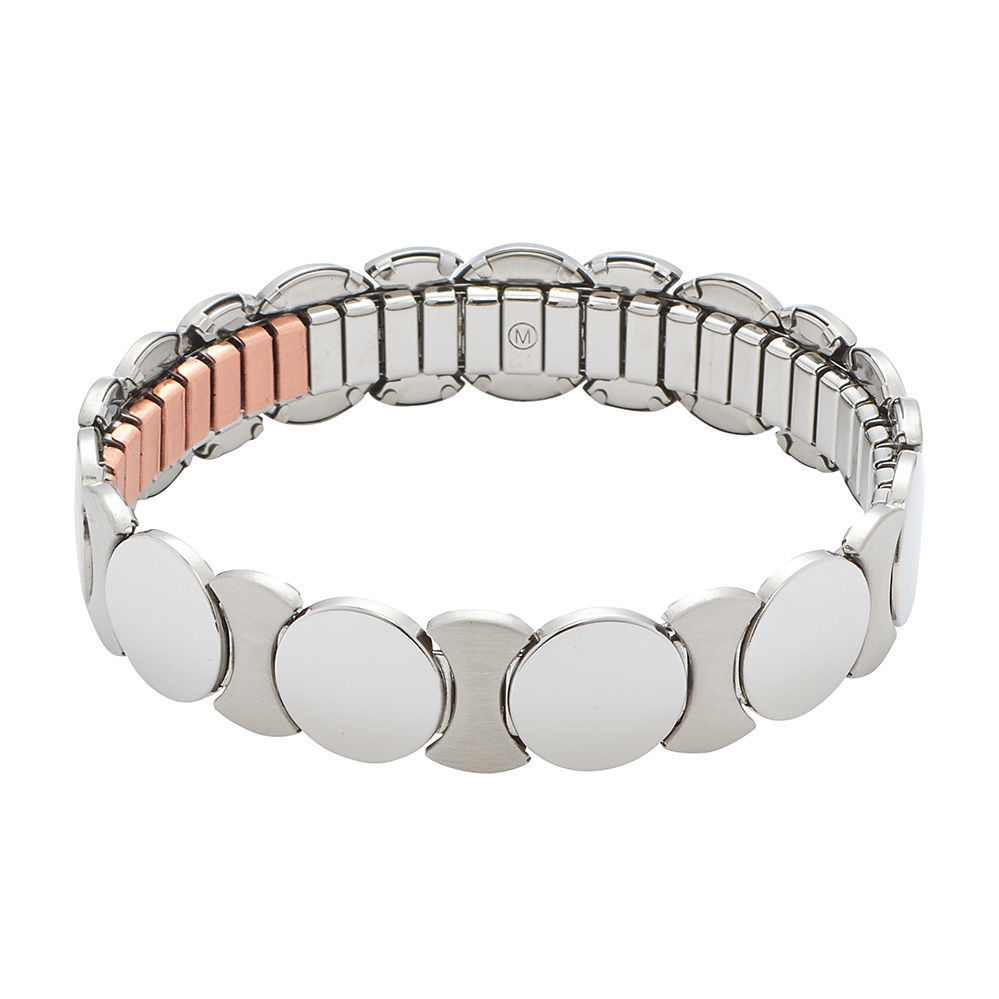 Energetix moderna fleksibilna magnetna zapestnica je popoln kos magnetnega nakita, ki ga lahko kombinirate z drugimi zapestnicami in oblačili. Notranjost te zapestnice iz nerjavečega jekla ima bakreni vložek. Energetix moderna fleksibilna magnetna zapestnica je opremljena tudi z dvema magnetoma, vsak z močjo 0,12 tesla. Visoka kvaliteta in igrivost ter eleganca magnetnih kosov nakita ter izdelkov Energetix že leta navdušuje uporabnike po vsem svetu in krasi zapestja mnogih ljudi, medtem ko neodimovi magneti poskrbijo za pozitivno učinkovanje na telo in duha.