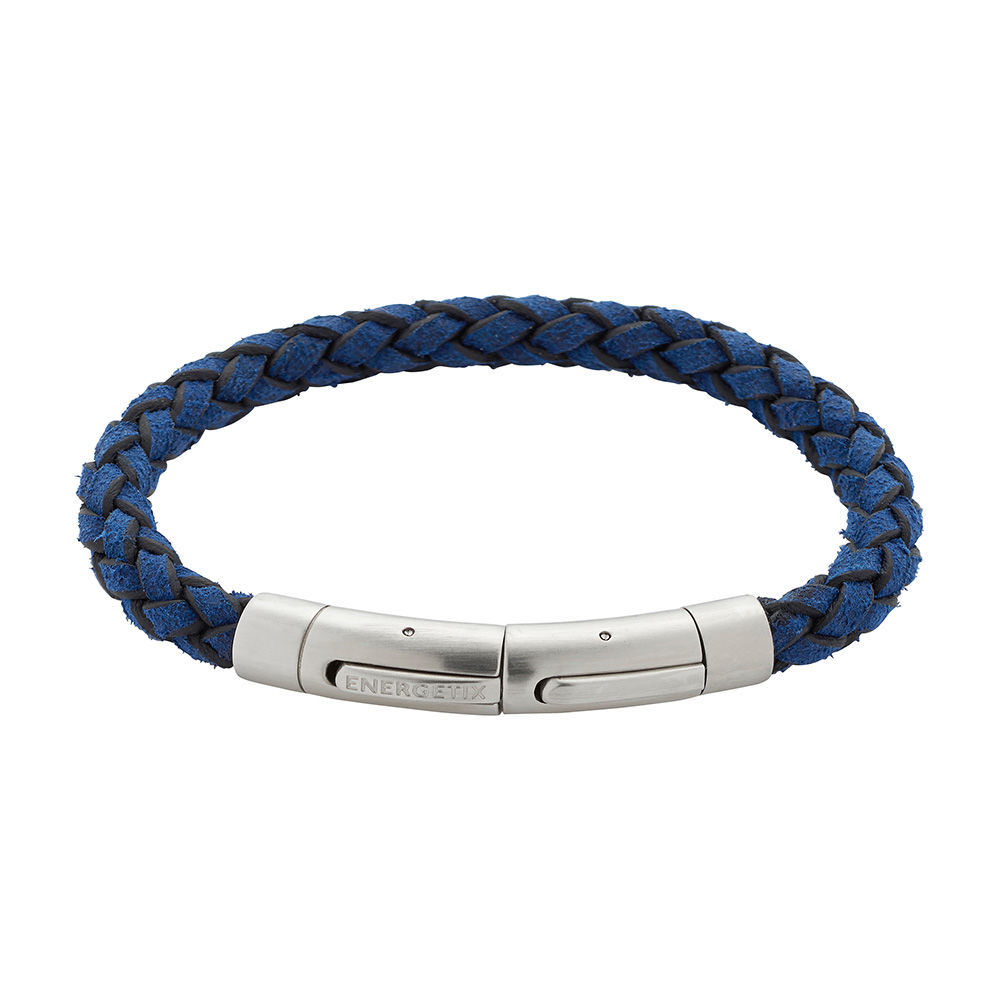 Zaradi ležernega videza pletenega usnja v temno modri barvi je ta Energetix pletena magnetna zapestnica športen in sproščen kos nakita, ki se odlično poda vsakemu videzu. Element iz brušenega nerjavečega jekla je hkrati dodatna paša za oči in deluje kot pritrdilni element. Energetix pletena magnetna zapestnica v modri barvi je zasnovana kot dvojna zaponka, tako da je mogoče velikost zapestnice prilagoditi z odstranitvijo enega od obeh elementov. Energetix pletena magnetna zapestnica v modri barvi nosi neodimov magnet z močjo 0,12 Tesla ali 1200 Gauss.