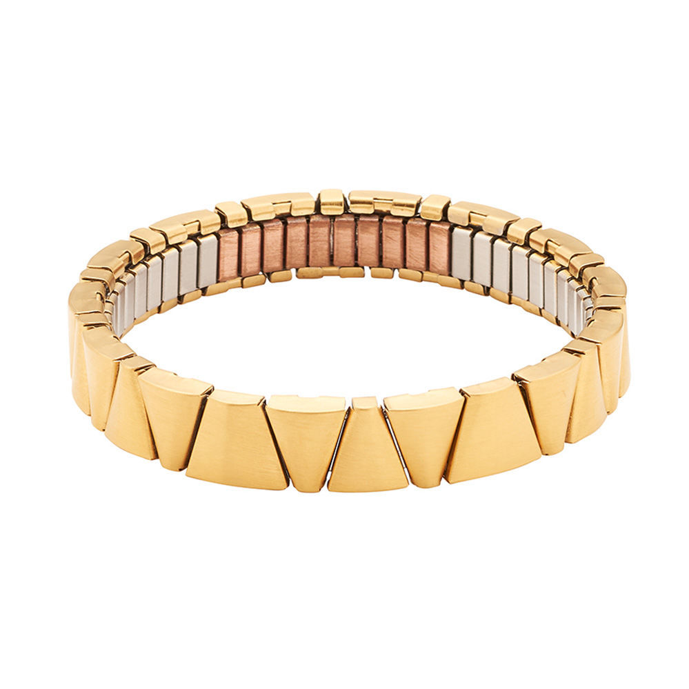 Topel in zelo eleganten odtenek zlate spremeni to raztegljivo magnetno zapestnico v neustavljivo pašo za oči na vašem zapestju. Matiran zaključek površine še bolj intenzivno poudari trikotne, rahlo ukrivljene elemente. Energetix raztegljiva magnetna zapestnica v zlati barvi z bakrenim dodatkom na notranji strani, je zelo vsestranska pri kombiniranju z različnimi stili oblačil in drugih kosov nakita. Prav tako je primerna za prav vse priložnosti in dogodke. Nosi kar dva neodimova magneta z močjo 0,12 Tesla ali 1200 Gauss.