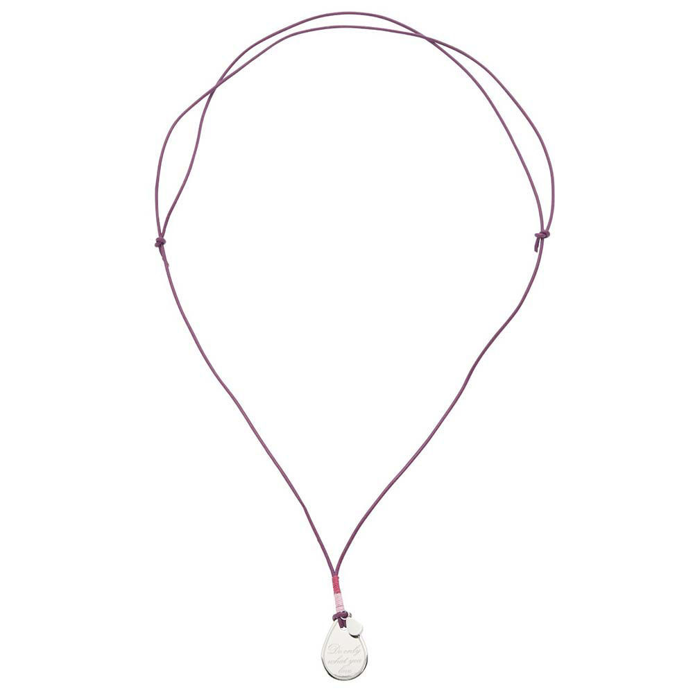 Intenzivne barve in element obeska s simboliko so bili združeni na tej Energetix ogrlici z obeskom, da bi ustvarili prepoznaven kos nakita. Ozka usnjena vrvica v vijolični barvi ne omogoča le individualnega prilagajanja dolžine, temveč predstavlja tudi popoln barvni poudarek za eleganten obesek iz poliranega nerjavečega jekla v brušenem videzu. Obesek ogrlice zaznamuje pomenljiva gravura, ki pravi: »Delaj samo tisto, kar ljubiš« – moto, ki naj bi vsakodnevno spremljal uporabnika te magnetne ogrlice.