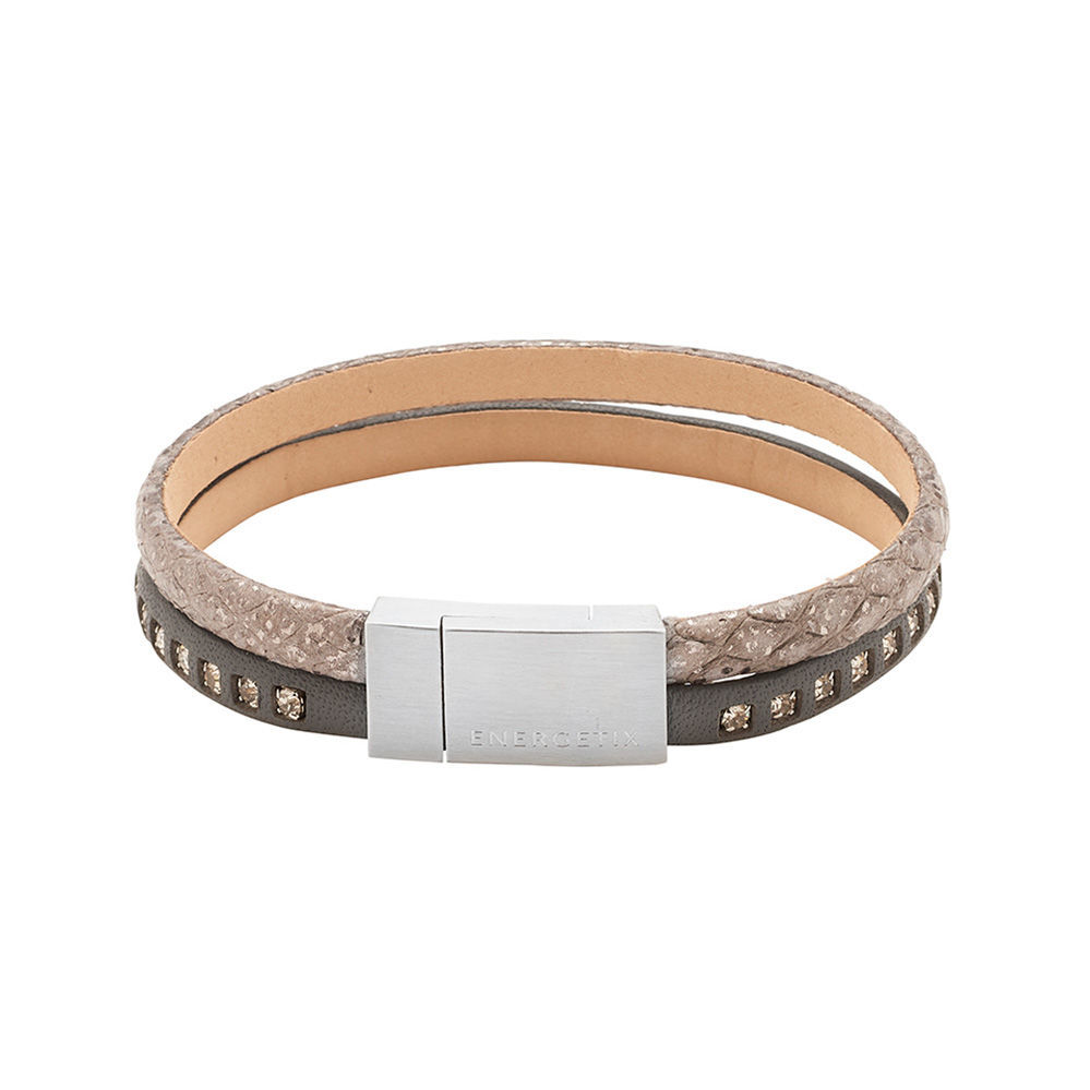 Športna, elegantna in čudovito bleščeča – popolna mešanica za zapestnico. Energetix usnjena magnetna zapestnica s kristali Swarovski in srebrnim vzorcem ter dvojnim paščkom je sestavljena iz temno sivega paščka s številnimi majhnimi kristali Swarovski in drugega svetlečega paščka, ki izstopa po srebrnkastem vzorcu. Ta magnetna zapestnica je še posebej namenjena najstnicam in mladostnim ženskam, ki rade posežejo po lepem nakitu. Energetix usnjena magnetna zapestnica s kristali Swarovski in srebrnim vzorcem nosi neodimov magnet z močjo 1200 Gauss.