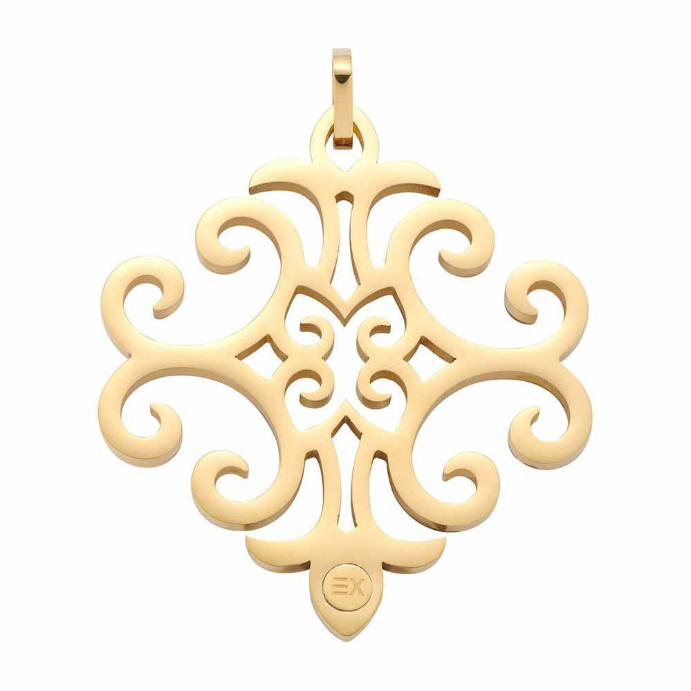 Ta povečan Energetix magnetni obesek v baročni obliki je ustvarjen v grafičnem baročnem stilu, ki je videti zelo moderen, a hkrati zelo eleganten. Posebnost tega magnetnega kosa nakita je, da nima posebne sprednje strani, tako da ga lahko nosite glede na osebne želje. Ena stran je izdelana v temno rjavem in rahlo prozornem acetatu, druga pa v zlati barvi z visoko poliranim zaključkom. Energetix velik magnetni obesek v baročni obliki nosi neodimov magnet z močjo 0,12 Tesla in je ustvarjen iz trpežnega nerjavečega jekla.