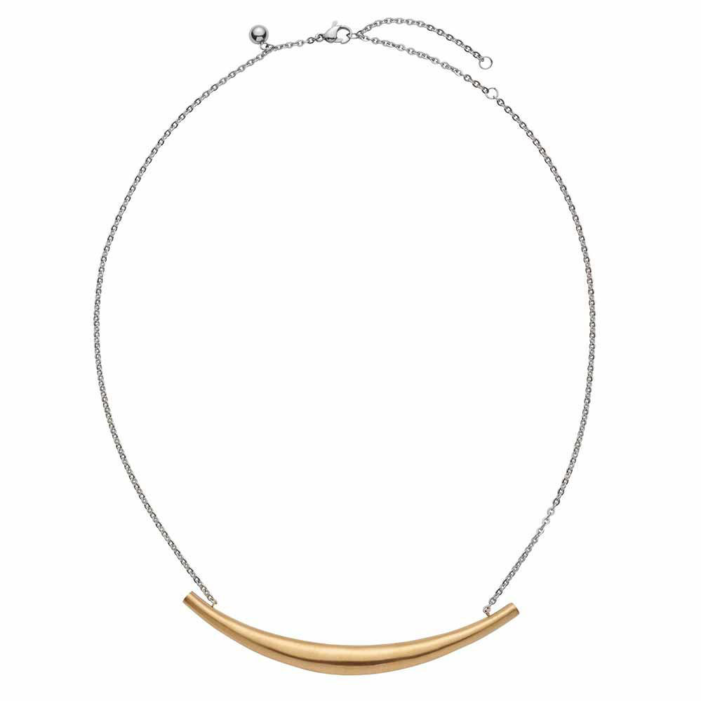 To grafično pomanjšano magnetno ogrlico poudari nenavadna kombinacija, ki je bila ustvarjena z nežno jekleno verižico in mat brušeno zlatim ukrivljenim osrednjim obeskom v obliki loka. Organsko mehka oblika, ki je značilnost sredinsko postavljenega elementa, oddaja čist in umirjen pridih modernosti. Energetix zlata ogrlica z obeskom v obliki loka je elegantna paša za oči v zelo modnem dvobarvnem videzu. Energetix zlata ogrlica z obeskom v obliki loka nosi 1 neodim magnet z močjo 0,12 Tesla ali 1200 Gauss in je ustvarjena iz trpežnega nerjavečega jekla.