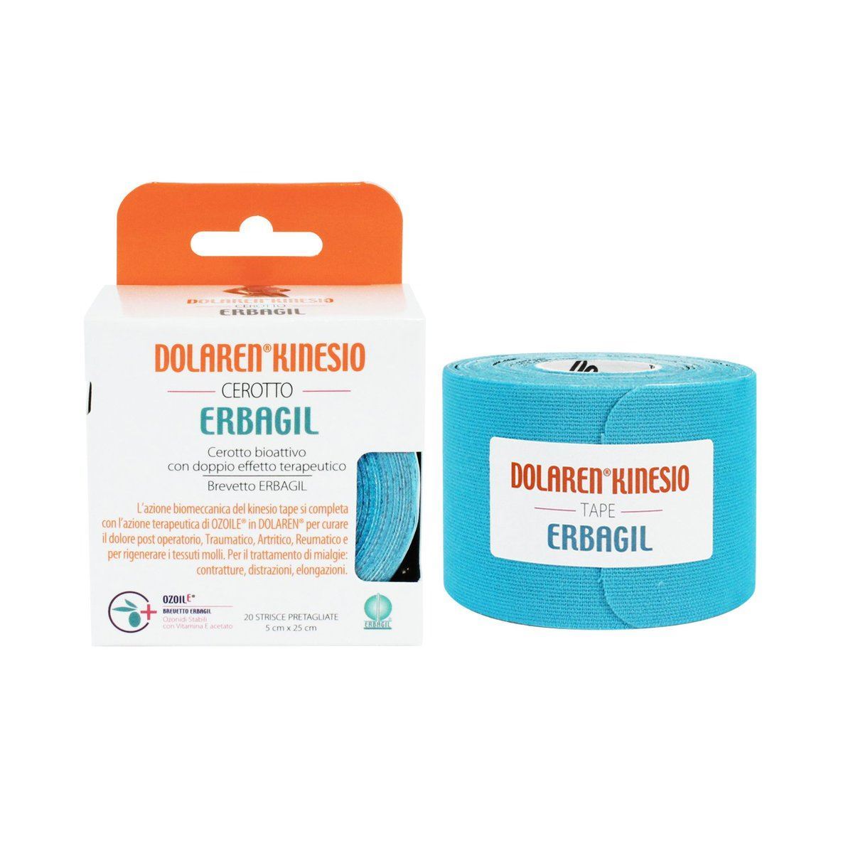 Erbagil Dolaren kinesio trakovi so biološko aktivni prednarezani trakovi, ki vsebujejo aktivno učinkovino, ki pripomore in lajša številne težave gibalnega aparata. Kineziološki trakovi nudijo to, kar nudijo navadni kinezio trakov + dodatno še močen pomirjevalni učinek, ki ga vsebuje impregniran nanos na notranji strani kinesio traku.