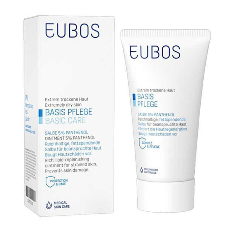 Tako s kremo Eubos, ki vsebuje 5 % panthenol-a tretiramo suho kožo na kolenih, suhost komolcev, ter tudi dojenčkove ritke v kolikor je ta razdražena.