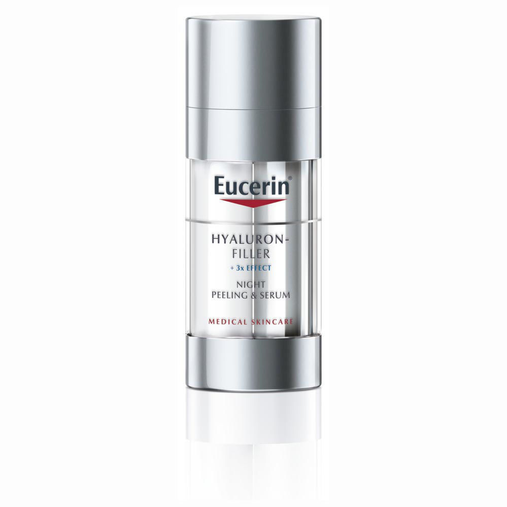 Eucerin Hyaluron-Filler nočni piling in serum je inovativen anti-age izdelek z dvojnim učinkom, ki deluje na odmrle celice in globoke gube.