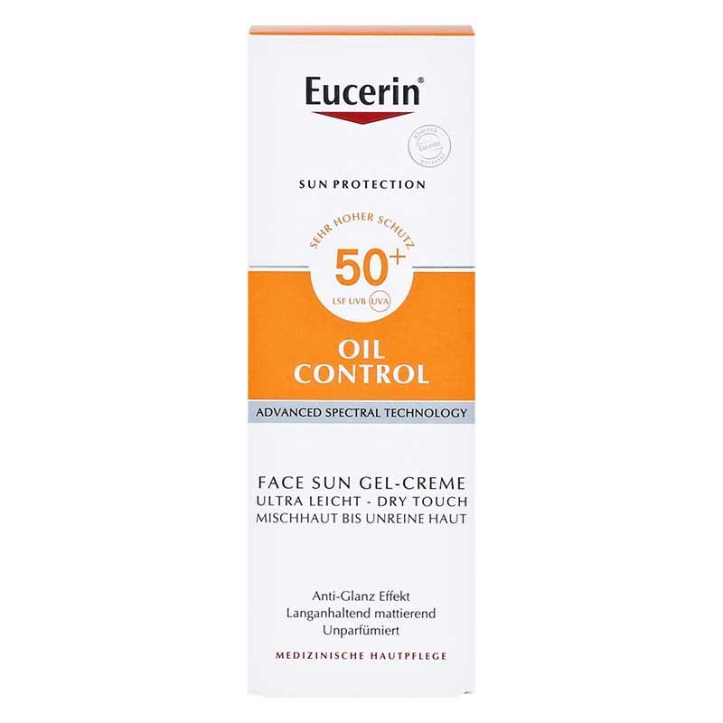 Eucerin Sun Oil control kremni gel za zaščito pred soncem je izdelek za zaščito obraza pred soncem z visokim zaščitnim faktorjem (ZF) za vsakodnevno uporabo, razvit za posebne potrebe normalne do mastne in k aknam nagnjene kože. Formula zagotavlja vrhunsko fotozaščito pred poškodbami kože zaradi sonca in vsebuje aktivno rešitev za izboljšanje stanja kože.