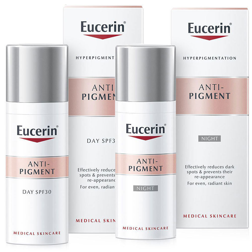 Sonce, hormonski vplivi in staranje lahko povzročijo hiperpigmentacijo: temne madeže in starostne pege (imenovane tudi sončne pege), ki koži dajejo neenakomeren videz. Linija Eucerin Anti-Pigment je bila posebej zasnovana za zmanjšanje hiperpigmentacije za enakomernejšo in sijočo kožo.