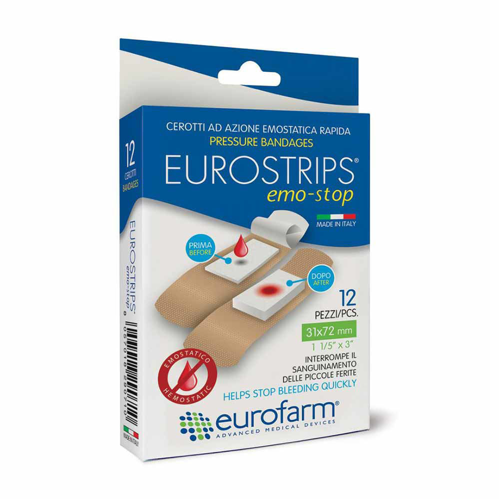 Eurostrips Emo je družina hemostatičnih obližov, ki so na voljo v več velikostih in formatih. Osrednja blazinica sterilnega obliža Eurostrips Emo je sestavljena iz supervpojnih vlaken, ki hitro povečajo svoj volumen takoj po vsrkanju krvi in naj bi tako delovala na stiskanje rane s hitro zaustavitvijo krvavitve. Super vpojna hipoalergena vlakna obliža so primerna za majhne rane. Vzdržljivost do 24 ur. Eurostrips Emo sterilni obliži niso ustvarjeni iz lateksa in so barvni za uporabo za osebe z alergijami na lateks ali občutljivostjo na izdelke iz lateksa.