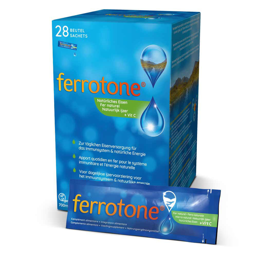 Ferrotone izvirska voda je naravno bogata z železom. Izvirska voda je visoko prečiščena, odstranjeni so morebitni mikroorganizmi ter bakterije, nato pa je voda pakirana v 25 mL vrečke, ki so enostavne za odpiranje in primerne tudi za na potovanja. Voda Ferrotone ni modificirana ter ne povzroča morebitnih neželenih stranskih učinkov.