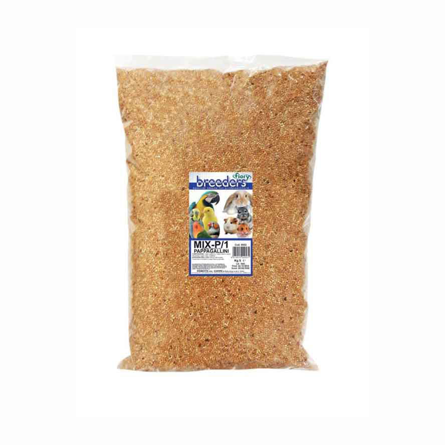 Fiory Breeders Mix semen za male papige je osnovna mešanica, ki vsebuje različna semena. Med njimi rumeno, rdeče in belo proso. Dodan je še oluščen oves ter posebna kanarska čužka.