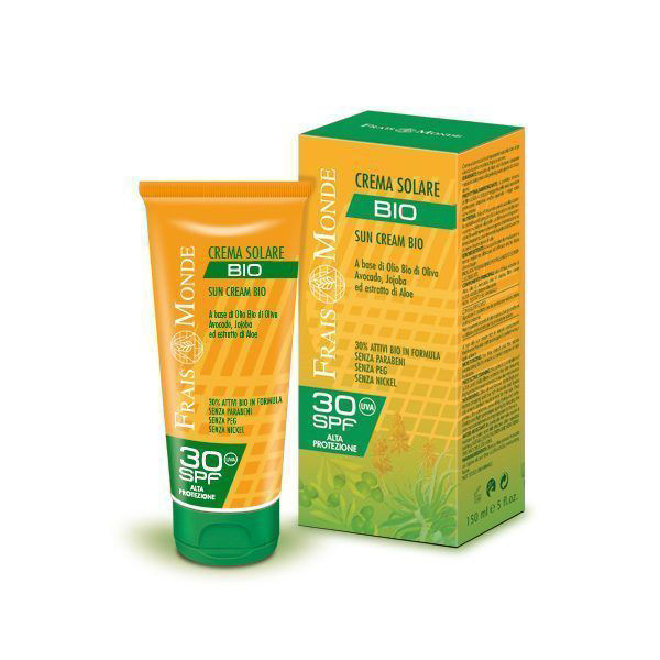 Poskrbite za zaščito svoje kože obraza in telesa s kakovostno ustvarjeno formulo izdelka Frais Monde krema za zaščito pred soncem, s kombinacijo bio rastlinskih olj. Naravno olivno, jojobino in avokadovo olje bodo poskrbeli za dodatno vlaženje kože, da bo ta postala občutno bolj mehka in gladka. Z vsebnostjo izvlečka aloe vere, ki blagodejno deluje na občutljivo kožo, boste pripomogli k preprečevanju neprijetnega občutka razdraženosti in zategnjenosti. Ponudite si naravno nego z zaščitnim faktorjem 30 skozi vse leto in prispevajte k zdravemu videzu svoje kože.
