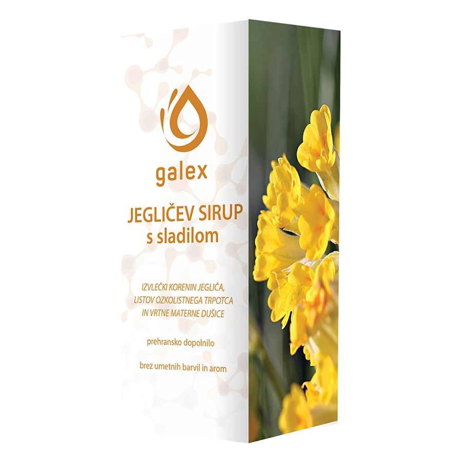 Galex jegličev sirup je prehransko dopolnilo, ki je oplemeniteno z ekstraktom jegliča, materine dušice in ozkolistnega trpotca, ki ima blagodejen vpliv na organizem ter predvsem na dihalni sistem.