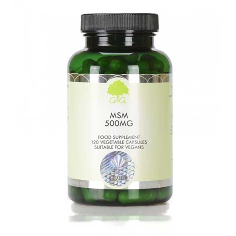 G&G Vitamins visoko kakovostno prehransko dopolnilo MSM 500 mg vsebuje patentirano najčistejšo obliko naravnega biorazpoložljivega žvepla OptiMSM.