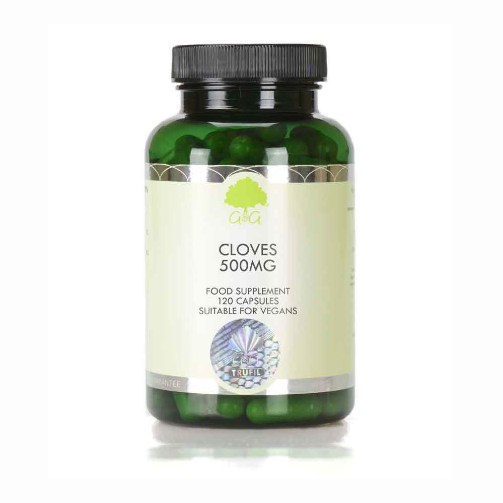 V prehranskem dopolnilu G&G Vitamins nageljnove žbice (klinčki) vam je na voljo visok odmerek te aromatične začimbe. Prehransko dopolnilo je pripravljeno popolnoma brez pomožnih snovi in v obliki rastlinskih kapsul.