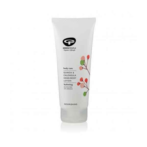 Green people negovalni losjon za telo in roke s kvinojo in ognjičem je losjon za nego telesa in rok in je obogaten z ekstraktom kvinoje in ognjiča. Deluje v skladu z naravnimi sestavinami in globinsko plemeniti površino kože telesa in rok.
