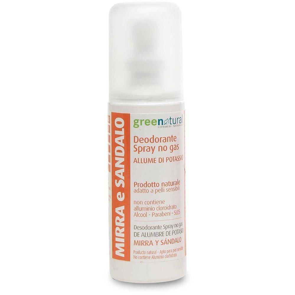 Deodorant v spreju vas bo vsak dan znova zaščitil pred neprijetnimi vonjavami, ki bi vas lahko oviral v vašem vsakdanu. GreeNatural deodorant mira in sandalovina deluje s pomočjo kalijevega alumna in vsebuje minerale, ki delujejo brez da bi zavirali naravni proces potenja. Kljub temu pa se deodorant bori proti bakterijam, ki ustvarijo neprijeten vonj.