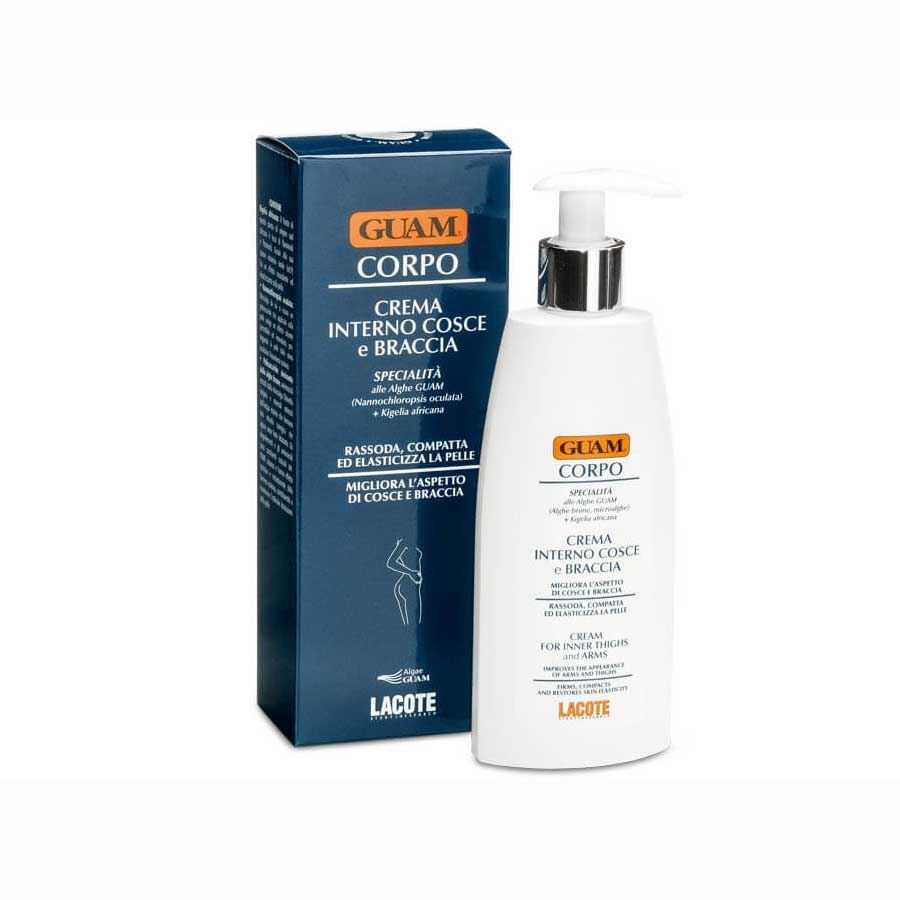 Guam Bioaktivna krema za napeto in čvrsto kožo rok in stegen je specialni tretma namenjen koži, ki se z leti povesi, izgubi elastičnost in postane ohlapna ter uvela. Namenjena je predvsem področju rok (področje nadlahti) in notranje strani stegen. Ob nanosu na kožo je viden takojšen lifting učinek, koži povrne elastičnost in prožnost, jo neguje in napne.