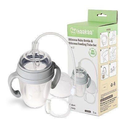 Haakaa komplet silikonske stekleničke za dojenčke 3. generacije in silikonske cevke za hranjenje je odličen komplet za soočanje s težavami s hranjenjem. Vključuje kar 6 izdelkov. Izdelano iz silikona za živila. Komplet olajša mamam vključevanje v proces hranjenja.