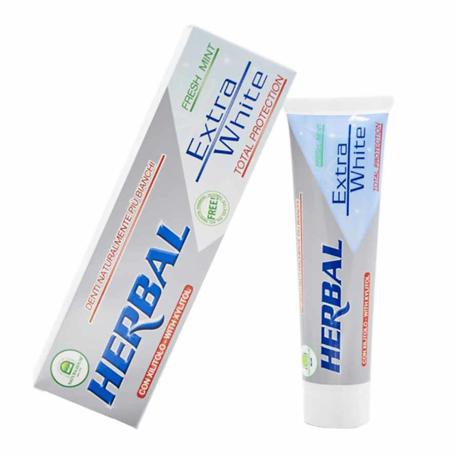 Ponudite svojim zobem videz ponovne beline in jih oskrbite s kvalitetnimi naravnimi sestavinami, ki se skrivajo v skrbno snovani formulaciji izdellka Herbal Extra White zobna pasta z belilnim učinkom. Učinkovit izdelek, z vsebnostjo ksilitola in hidriranega silicijevega dioksida, poskrbi za učinek nežnega beljenja ter deluje na zobni kamen ter zobne obloge. Zaradi svoje blage formule je Herbal Extra White zobna pasta z belilnim učinkom primerna tudi za čiščenje občutljivih zob.