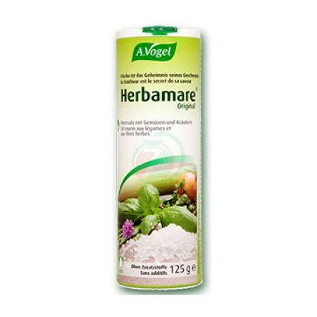 Zeliščna sol Herbamare Original vsebuje 94 % morske soli in 6 % zelišč in zelenjave (zelena, por, kreša, česen, čebula, drobnjak, peteršilj, luštrek, bazilika, majaron, rožmarin, timijan ter morska alga Kelp).