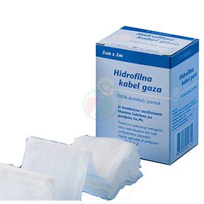 Hidrofilna kabel gaza je bombažna sterilizirana tkanina za higienske namene.