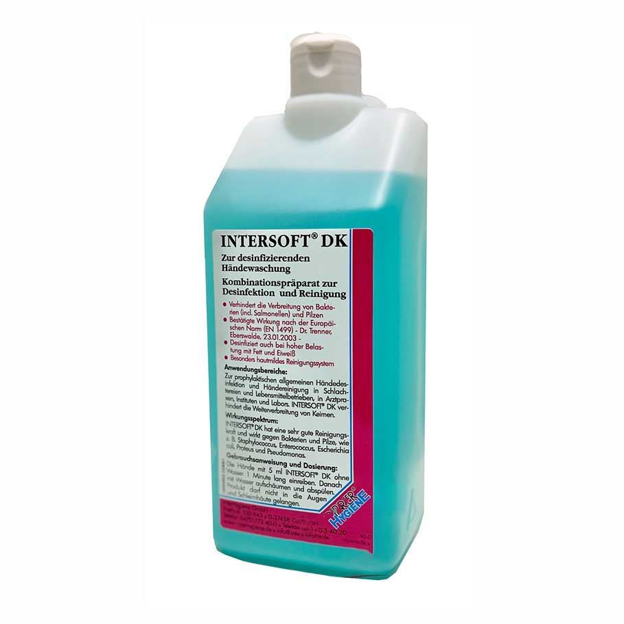 Intersoft DK je hitro delujoč in izjemno nežen sistem čiščenja rok z dokazano učinkovitostjo proti bakterijam in glivicam. Razkužilo in čistilo ob enem nima dolgotrajnega učinka ni, kar omogoča, da se flora kože ustrezno hitro obnovi.