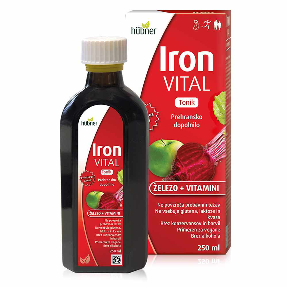 Iron Vital tonik z železom in vitamini je prehransko dopolnilo v tekoči obliki, ki vsebuje železo, vitamine in druge ključne minerale. Železo, vitamin B2, B6, B12, niacin in vitamin C prispevajo k sproščanju energije pri presnovi ter k zmanjšanju utrujenosti in izčrpanosti. Iron Vital tonik z železom in vitamini zagotavlja oskrbo z železom posameznikom v posebnih življenjskih obdobjih, na primer nosečnicam in doječim materam, ženskam z močno menstruacijo, vegetarijancem in veganom ter športnikom in aktivnim ljudem.