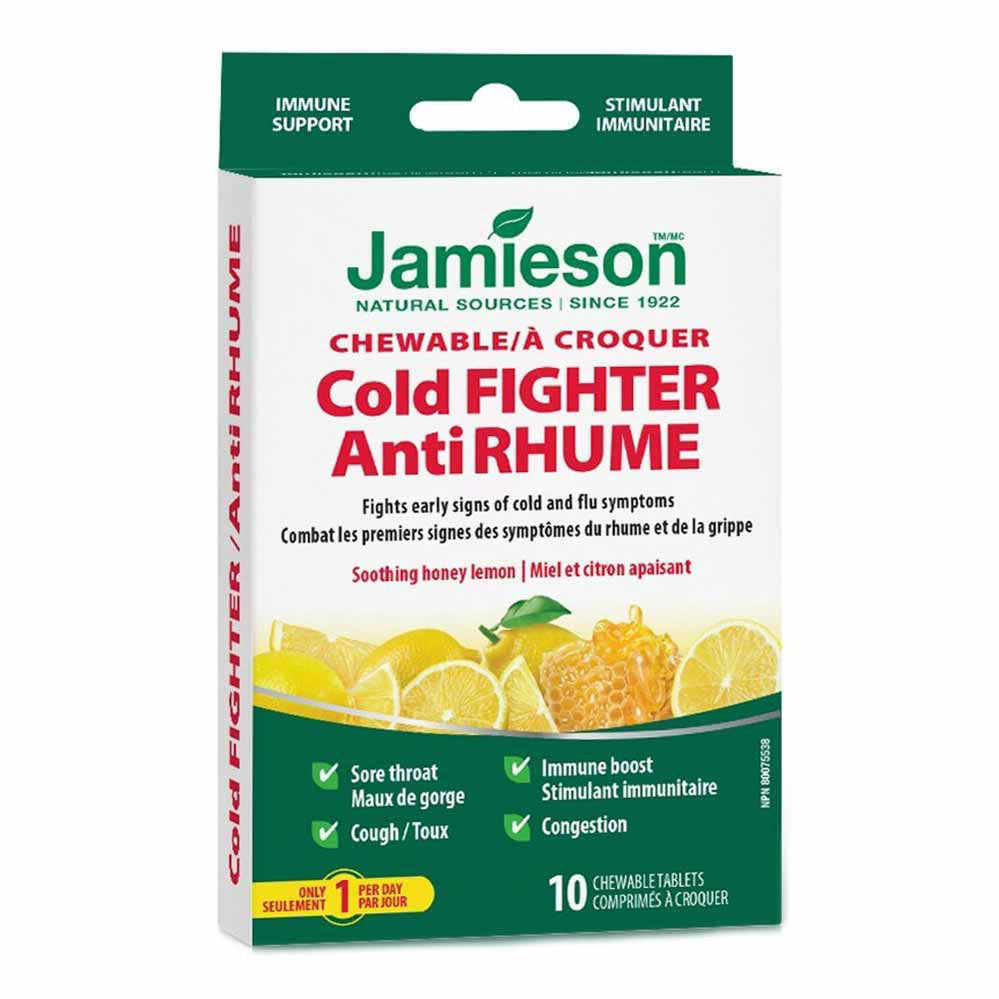 Jamieson Cold Fighter žvečljive tablete proti simptomom prehlada vsebujejo vitamin C, cink, ameriški slamnik in ingver. Ta zdravilna kombinacija je priporočljiva že ob prvih znakih prehlada. V laboratorijih Jamieson vedo, da želite že ob prvih znakih prehlada, storiti vse kar je mogoče, da se nedolžen prehlad ne bi razvil dalje. Jamieson Cold Fighter žvečljive tablete proti simptomom prehlada združujejo popolnoma naravne sestavine za krepitev imunskega sistema in odpornosti.