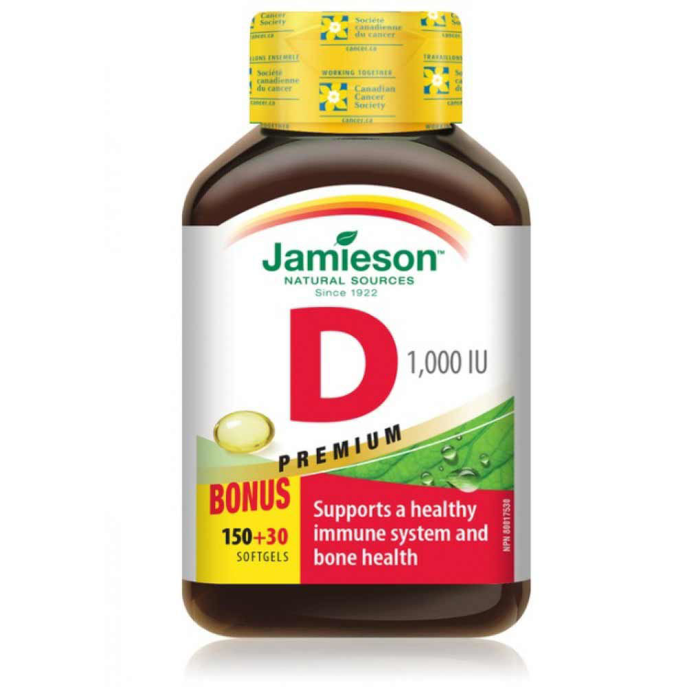 Jamieson vitamin D 25 mcg - 1000 I.E., 180 softgel kapsul