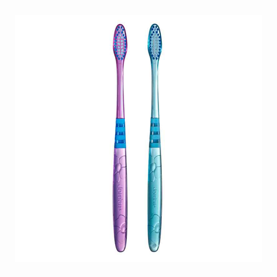 Očistite svoje zobe z izjemno učinkovitim dvojnim pakiranjem zobne ščetke Jordan Target Teeth & Gums. Posebno oblikovana zobna ščetka, katere namen je, da bo vsak dan znova, seveda z ustrezno tehniko ščetkanja, odstranila zobne obloge s celotnega zoba in tudi na predelu med dlesnijo in zobom.
