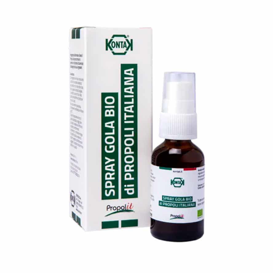 Prispevajte k udobju vaših dihal in celotnemu izboljšanju počutja z vsakodnevno uporabo Kontak BIO propolis spreja za grlo. Izdelek Kontak BIO propolis sprej za grlo je iz ekološke pridelave in nosi BIO certifikate. Ustvarjen je iz pristnega italijanskega propolisa in medu ter vsebuje naravno prisotne vitamine in minerale. Blagodejno vpliva na občutek v grlu in nudi prijetno zaščito v zimskih in jesenskih časih, ko sta na pohodu prehlad in gripa. Poskrbite za prijetno blaženje simptomov draženja in pozitivno vplivajte na svoj imunski sistem z vsakodnevno uporabo izdelka Kontak BIO propolis sprej za grlo.