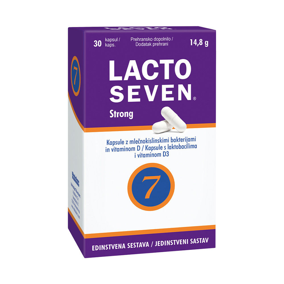 V prehranskem dopolnilu LactoSeven Strong boste z enim odmerkom zaužili kombinacijo kar sedmih različnih sevov mlečnokislinskih bakterij v kombinaciji z pomembnim vitaminom, vitaminom D.