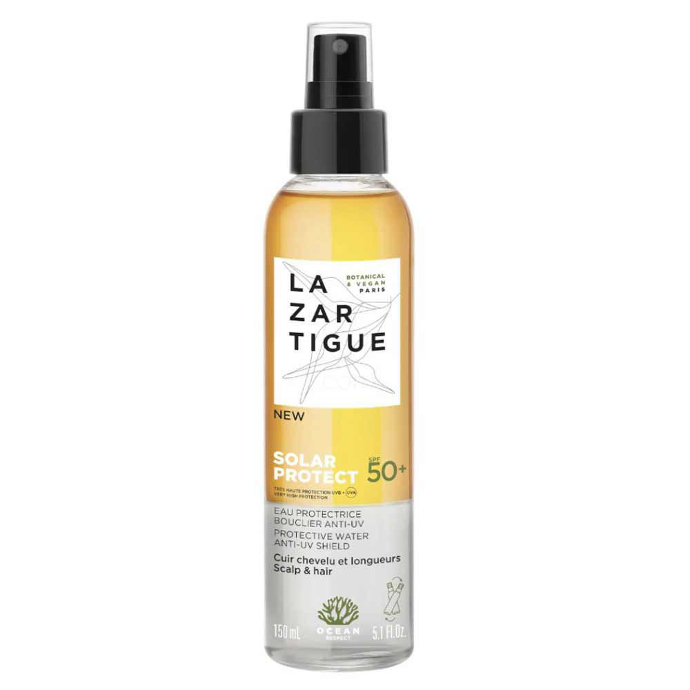 Lazartigue Solar Protect ZF 50+ zaščitna vodica vlaži in ščiti lasišče in lase pred zunanjimi vplivi. Ustvari vlažilno in hranilno bariero, ki ščiti vlakna pred izsušitvijo in lasišče pred opeklinami. Ta lahkotna dvofazna tekstura oplemeniti vaše lase ter jih naredi hidrirane, mehke in svilnate. Kombinacija organskih filtrov zagotavljajo zelo visoko zaščito pred UVA in UVB žarki. Izvleček Fucus Vesiculosus (rdeča alga) je znan po svojih antioksidativnih lastnostih, kokosov kaprilat pa pomaga v boju proti izsušenosti las.