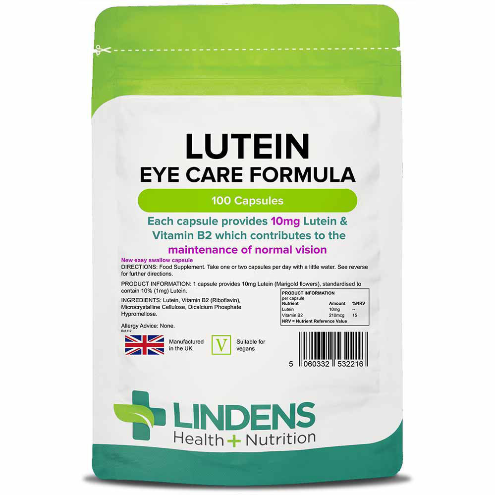 Lindens Lutein - vzdrževanje normalnega vida je prehransko dopolnilo v obliki kapsul s hitrim sproščanjem. Vsebuje lutein, ki je pridobljen iz izvlečka rumene žametnice. Lutein je rumeno-oranžen pigment, ki se naravno nahaja v makuli, delu očesa in je naravno prisoten v očesu. Prav tako je v veliki meri odgovoren za 3D vid. Dodatek vitamina B2 prispeva k normalni rasti ploda (fetus, nerojeni otrok) ter je prav tako pomemben za normalno stanje železa v krvi in normalno strukturo rdečih krvnih celic.