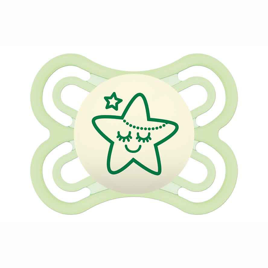 To je silikonska nočna duda, ki je na voljo v treh različnih velikostih. Izbirate lahko med manjšo velikostjo, ki je primerna od 2 od 6 mesecev, srednjo, ki jo lahko ponudite po dopolnjenem 6. mesecu ter večjo, ki je primerna za otroke po 16 mesecu.