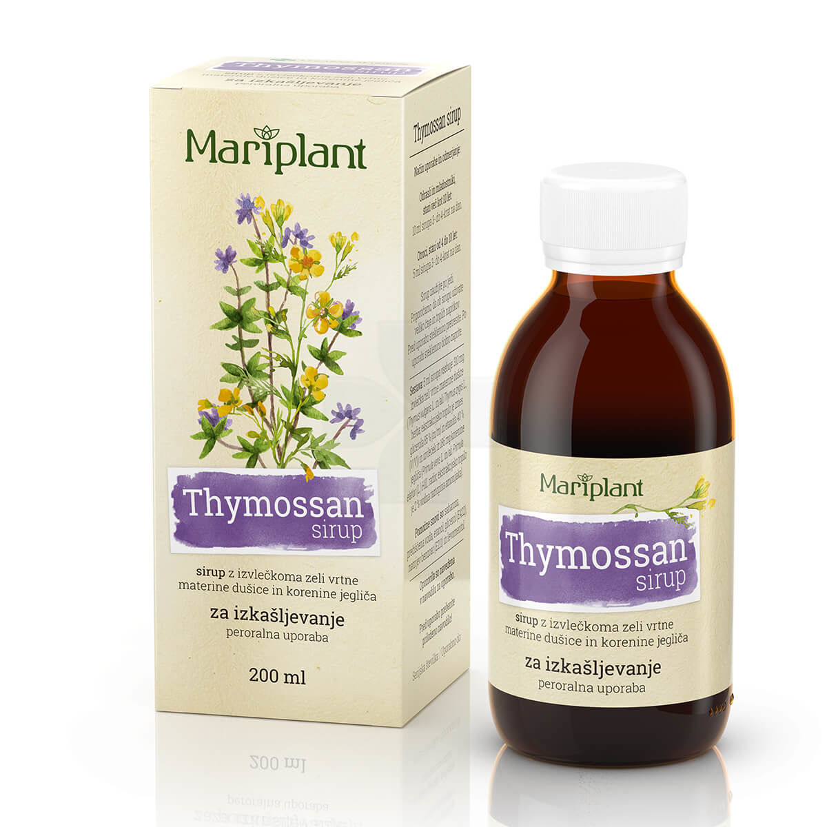 Mariplant Thymossan sirup je namenjen izkašljevanju. Izdelan je iz izvlečka zeli vrtne materine dušice ter korenine jegliča. Primeren tudi za otroke od 4. leta starosti naprej.
