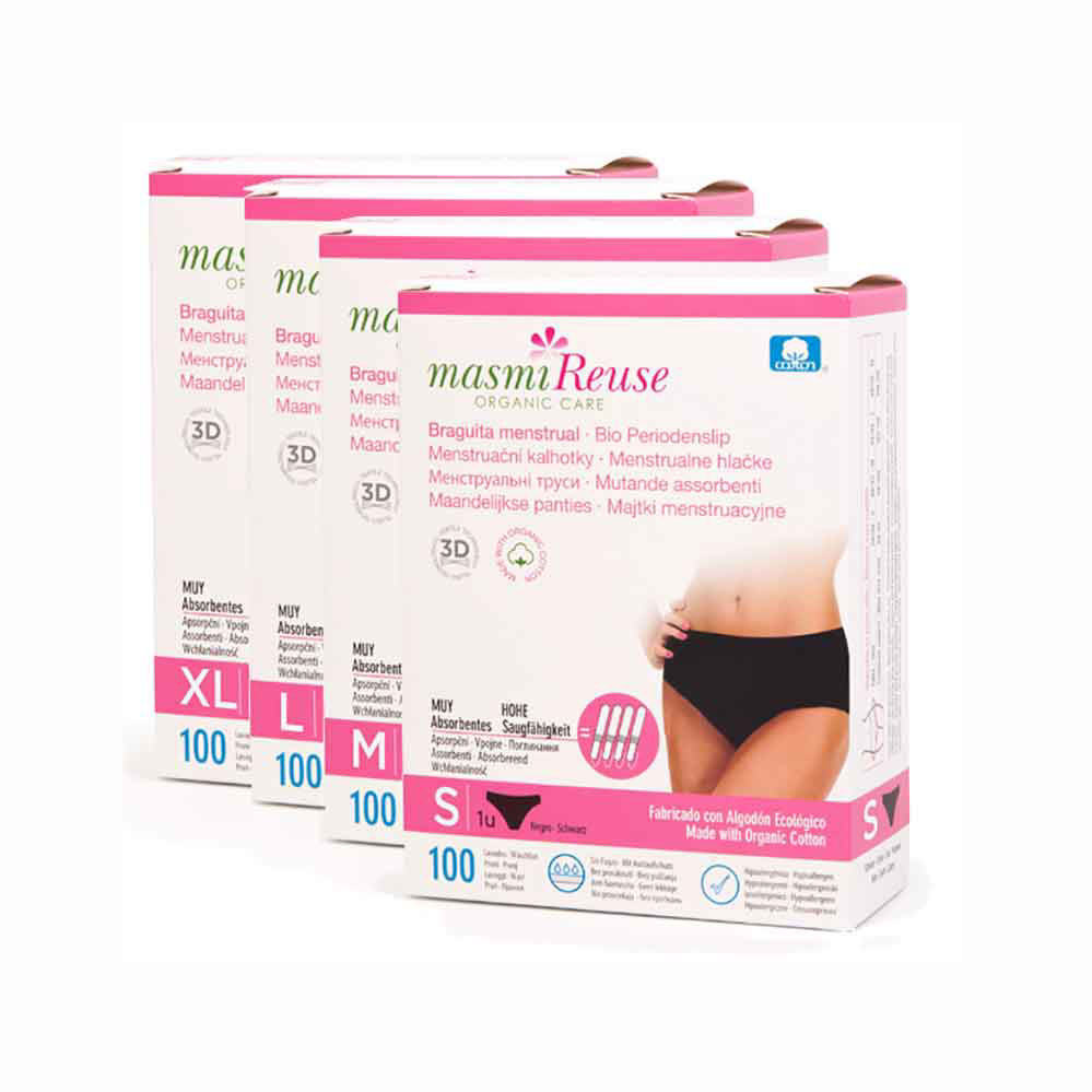 Masmi pralne menstrualne hlačke so odlično vpojne menstrualne hlačke. Ponašajo se z mehkobo in udobnostjo. Hlačke so izdelane iz bombaža. Na voljo v različnih velikostih.