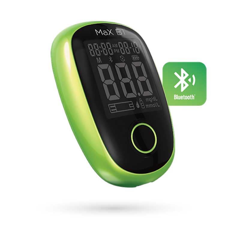 MaX BT edinstveni merilnik ravni glukoze je merilnik ravni glukoze, ki omogoča brezžično povezavo z vašim pametnim telefonom.