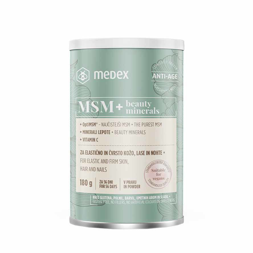Medex MSM + beauty minerals je prehransko dopolnilo v prahu. Vsebuje MSM ter je obogaten z vitaminom C. Dodanih je še nekaj drugih učinkovitih mineralov.